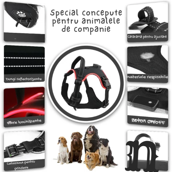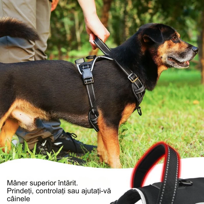 câini. Cu un design modern și funcțional, acest ham nu doar evidențiază stilul,